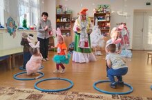 Подвижные игры имеют большое значение для всестороннего развития ребенка. Игры развивают не только физически, в процессе овладения различными движениями у детей формируется способность проявлять выдержку, волю, уверенно действовать в коллективе и ориентироваться в пространстве. Дети группы раннего возраста перед педагогами ДОУ показали игру "Лиса и зайчики". Они вместе отправились в зимний лес, где встретили зайчика , лису и поиграли с ними./Күчмә уеннар баланың һәрьяклап үсеше өчен зур әһәмияткә ия. Уеннар физик яктан гына түгел, төрле хәрәкәтләрне үзләштерү процессында балаларда чыдамлык, ихтыяр, коллективта ышанычлы эш итү һәм киңлектә ориентлашу сәләте формалаша. Кечкенә яшьтәге төркем балалары педагоглар алдында "Төлке һәм куянчыклар" уенын күрсәттеләр.