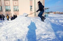 Родители подготовительной группы устроили "Снежный десант" и помогли не только очистить участок от снега, но и построили горку для своих ребят./ Мәктәпкә әзерлек төркеменең әти-әниләре участокны кардан чистартырга һәм балаларга тау ясарга ярдәм иттеләр.