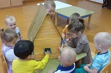 "Дом , в котором я живу,"- так называлось занятие в младшей группе, где педагог Власова Т.А. расширила представления детей об окружающем мире, о доме, семье, близких, которые живут вместе. Затем ребята из строительного материала строили домики./Кече төркемдә педагог Власова Т.А. балалар белән "Мин яшәгән йорт" дигән темага дәрес үткәрде.