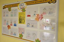 В рамках празднования Всемирного Дня учителя в школе была оформлена выставка детских рисунков./Бөтендөнья Укытучылар көнен бәйрәм итү кысаларында мәктәптә балалар рәсемнәре күргәзмәсе оештырылды. 03.10.2025