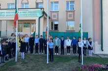 Началась учебная неделя и по традиции учащиеся подняли государственные флаги./Уку атнасы башланды һәм традиция буенча укучылар дәүләт флагларын күтәрделәр.