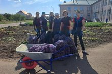 Сентябрьская погода порадовала тёплым солнечным деньком. В этом году в нашей школе выращен богатый урожай овощей. Сотрудники собрали с пришкольного участка свеклу, морковь, лук./Көз урып-җыю вакыты. Мәктәп участогында үстерелгән авыл хуҗалыгы продукциясе мәктәп ашханәсендә укучыларны тукландыруны оештыру өчен кулланыла.