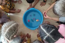 Дети старшей группы проводили опыт с водой и бумагой "Расцветающие цветы на воде" ./ Өлкән төркем балалары су һәм кәгазь белән тәҗрибә үткәрделәр . 20.06.2023