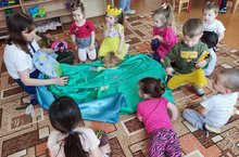 В младшей группе дети смотрели постановку сказки "Путешествие муравьишки"./Кече төркемдә балалар "Кырмыска сәяхәте"әкиятен карадылар.