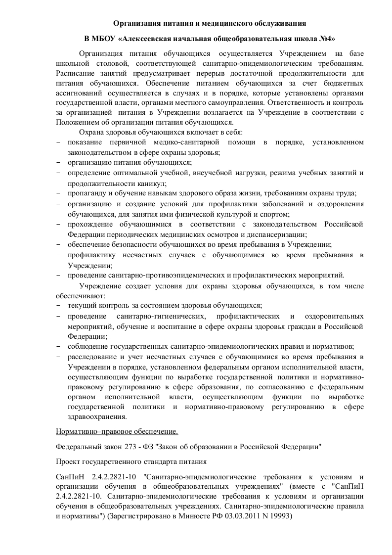 - перечень юридических лиц и индивидуальных предпринимателей, оказывающих услуги по организации питания в МБОУ "Алексеевская НОШ №4": питание в МБОУ «Алексеевская начальная общеобразовательная школа №4» осуществляется организацией ООО «ЭДЕМ».