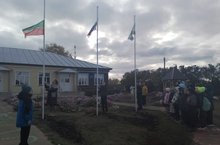 Торжественное поднятие флагов Российской Федерации, Республики Татарстан, Алексеевского муниципального района, исполнение гимна.