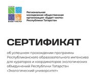 Руководитель отряда, учитель химии и биологии Абдуллина В.А. успешно освоила программу Республиканского образовательного интенсива для кураторов и координаторов экологических объединений Республики Татарстан "Экологический университет".