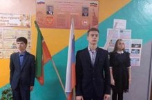 Торжественный вынос флагов Российской Федерации, Республики Татарстан и Алексеевского муниципального района с установлением их на флагшток, исполнение гимна.