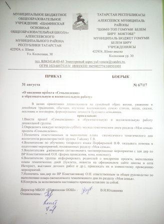 Приказ МО и Н РТ "О введениее проекта "Семьеведение"...."