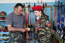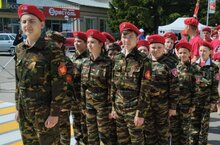 Члены клуба "Юнармеец 2" руководитель Арсентьев П.В. участвуют в репетиции Парада к 9 мая в п.г.т Алексеевское