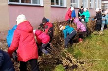 Сегодня учащиеся нашей школы совместно с классными руководителями и другим педагогическим составом вышли на осеннюю уборку пришкольной территории.