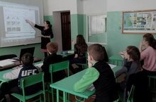 Учитель информатики провела общешкольный урок цифры. В ходе урока учащиеся были разделены на команды. После объяснений учителя и просмотра фильма учащиеся приступили к практическому занятию.