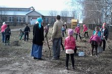 Сегодня в нашей школе прошёл общешкольный субботник. Ученики вместе с учителями вышли на уборку территории. В результате дружной и слаженной работы очищена от мусора и опавших листьев территория, прилегающая к школе и памятнику погибших земляков. Учащиеся 7 класса вместе с классным руководителем посадили 25 сосенок.