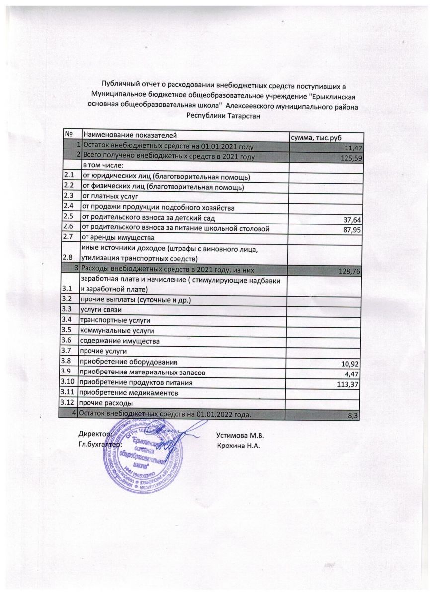 ►Публичный отчёт о расходовании внебюджетных средств 2021 год