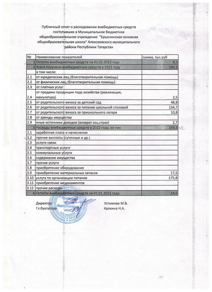 ►Публичный отчёт о расходовании внебюджетных средств 2022