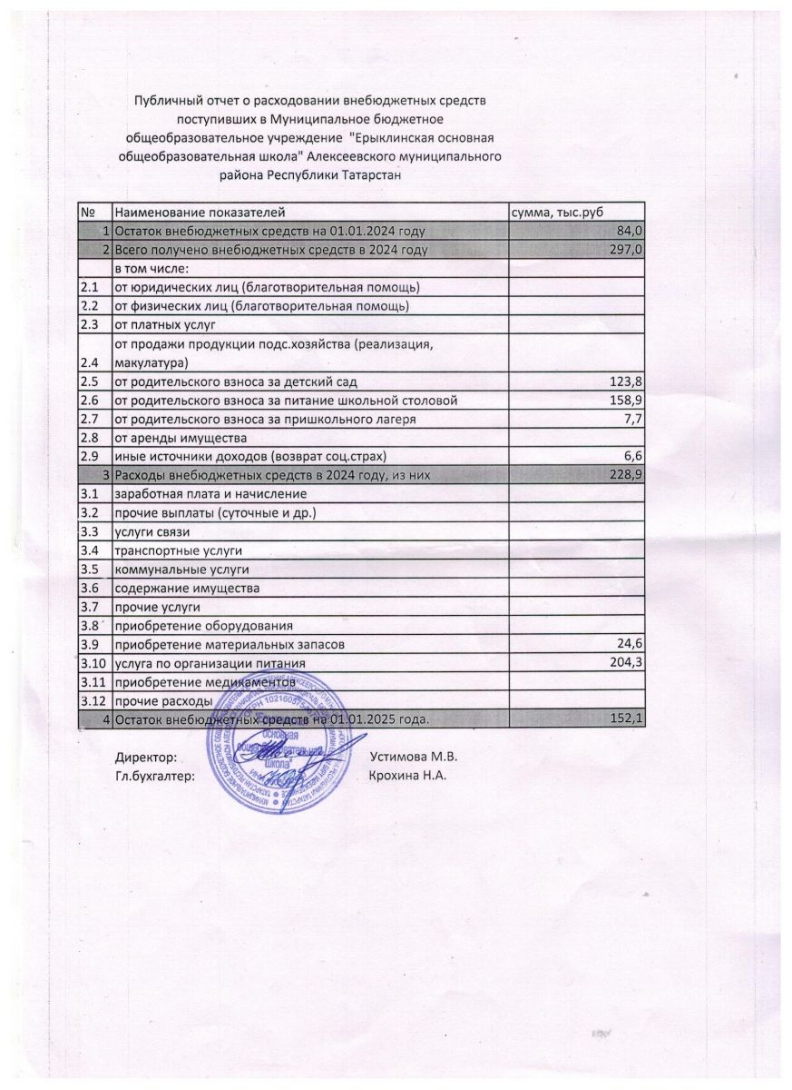 ► Публичный отчёт о расходовании внебюджетных средств 2024 год