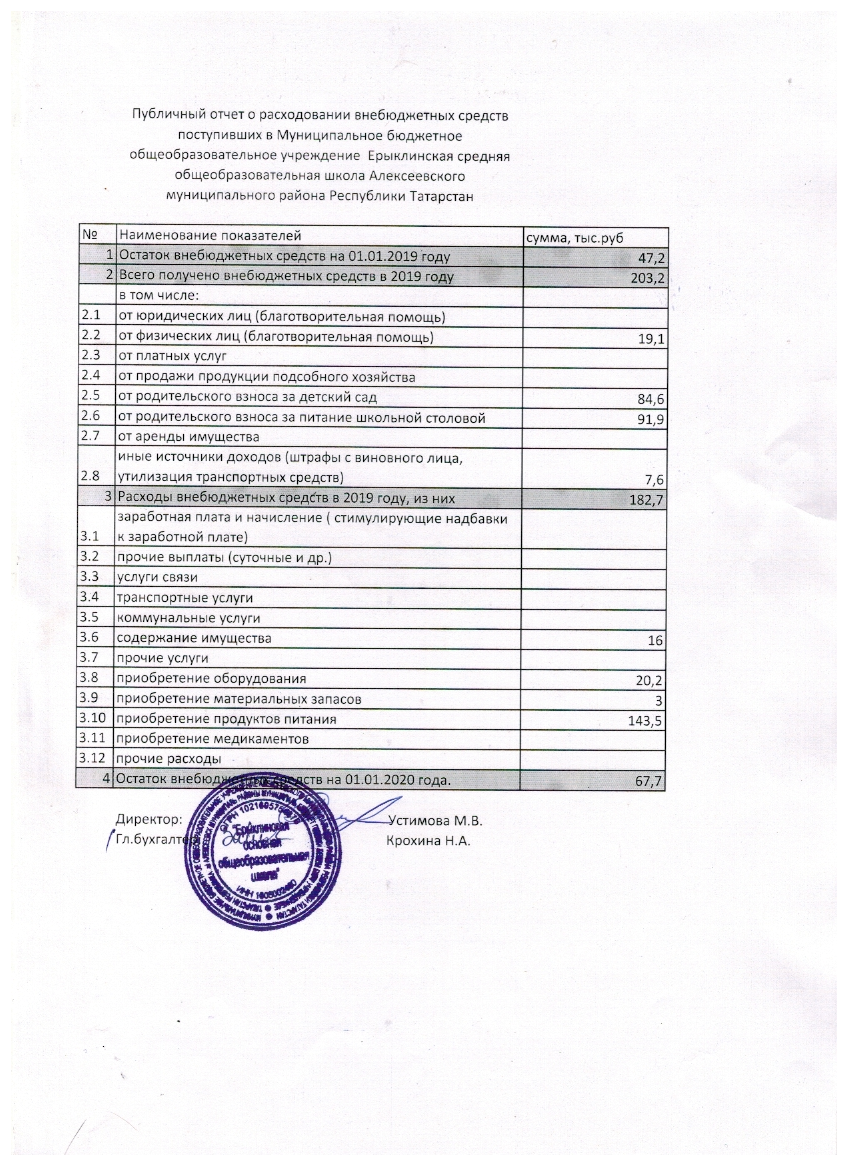 ► Публичный отчёт о расходовании внебюджетных средств 2019 год
