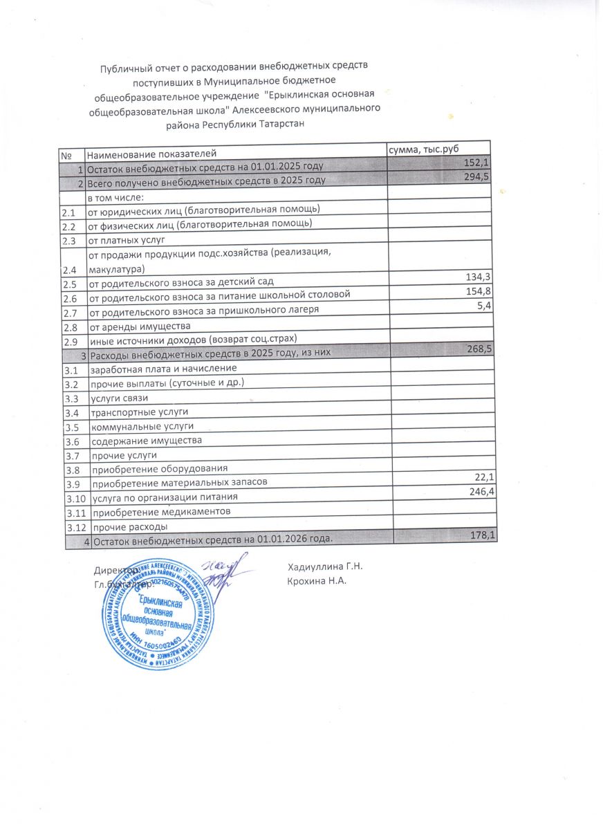 ►Публичный отчёт о расходовании внебюджетных средств 2025 год