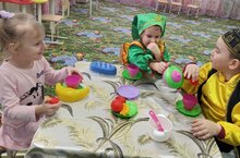 Әкиятне тыңлаганнан соң балалар үзләре дә әкият геройларына әверелделәр-бергәләп уйлап чыгарган, ,,Кунакта"әкиятен уйнадылар.Әкиятләр аша балаларда дәү әти,дәү әниләренә карата хөрмәт,кайгыртучанлык хисләре тәрбияләнә ,төрле образларга кереп уйнап,артистлык сәләтләре дә үстерелә. -