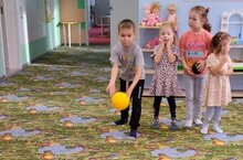 В группе дети вместе с воспитателем провели игру боулинг. Ребята сами выставляли кегли в ряд и сбивали мячом.