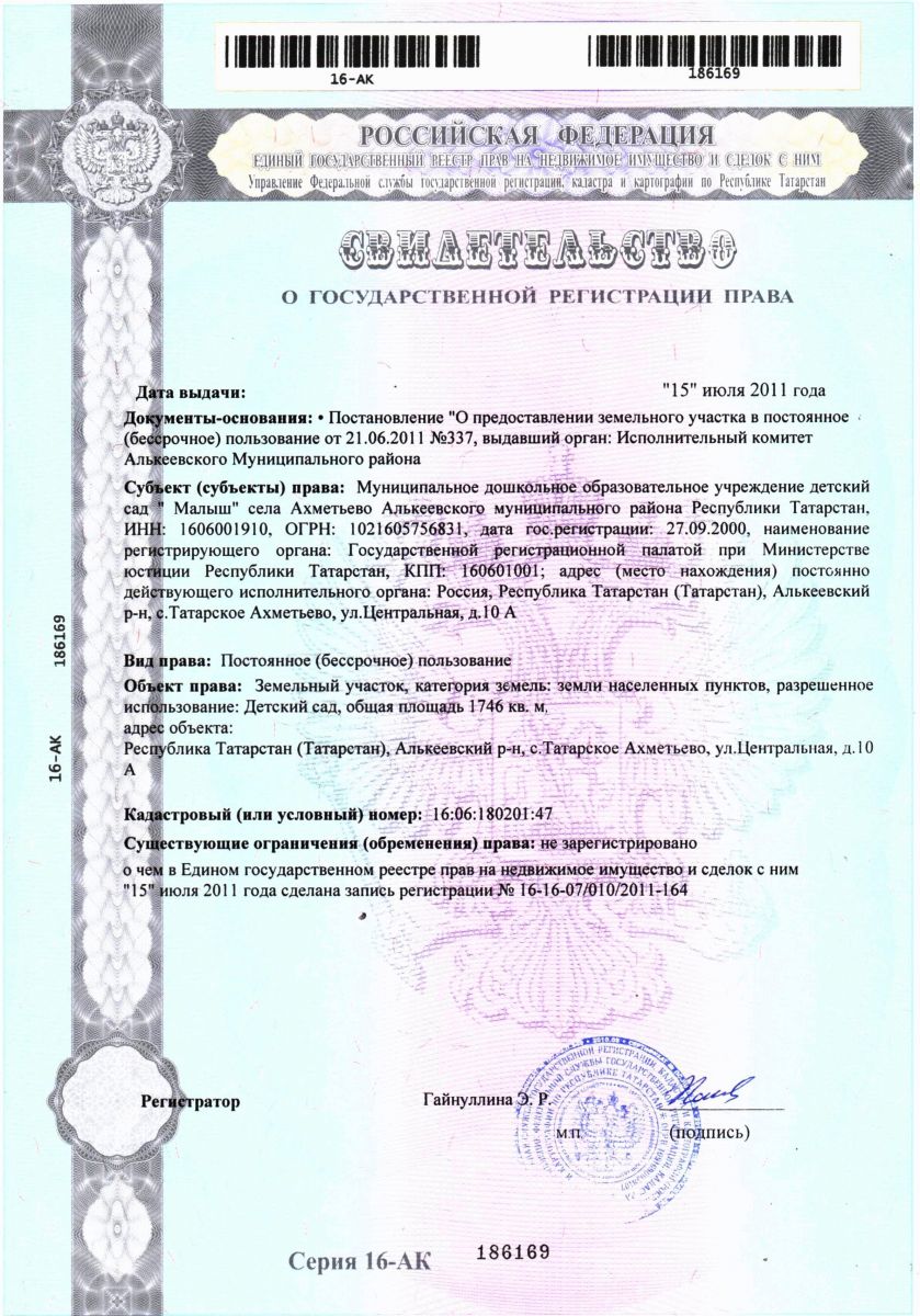 | Короткое название: | МБДОУ детский сад «Малыш» села Ахметьево Алькеевского МР РТ |