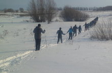 Кышкы каникулның бер көне. 5-11 сыйныф укучылары чаңгыда йөрде. Саф һавада рәхәтләнеп ял иттек.