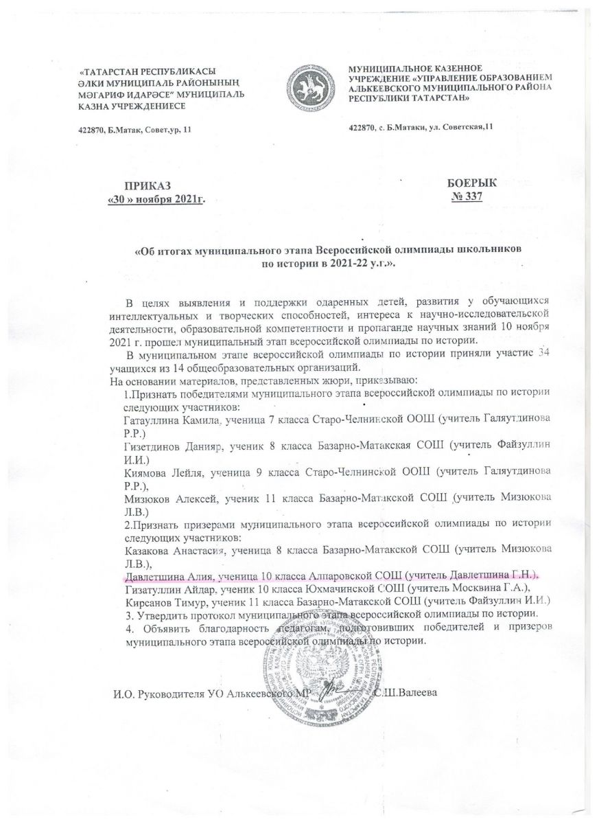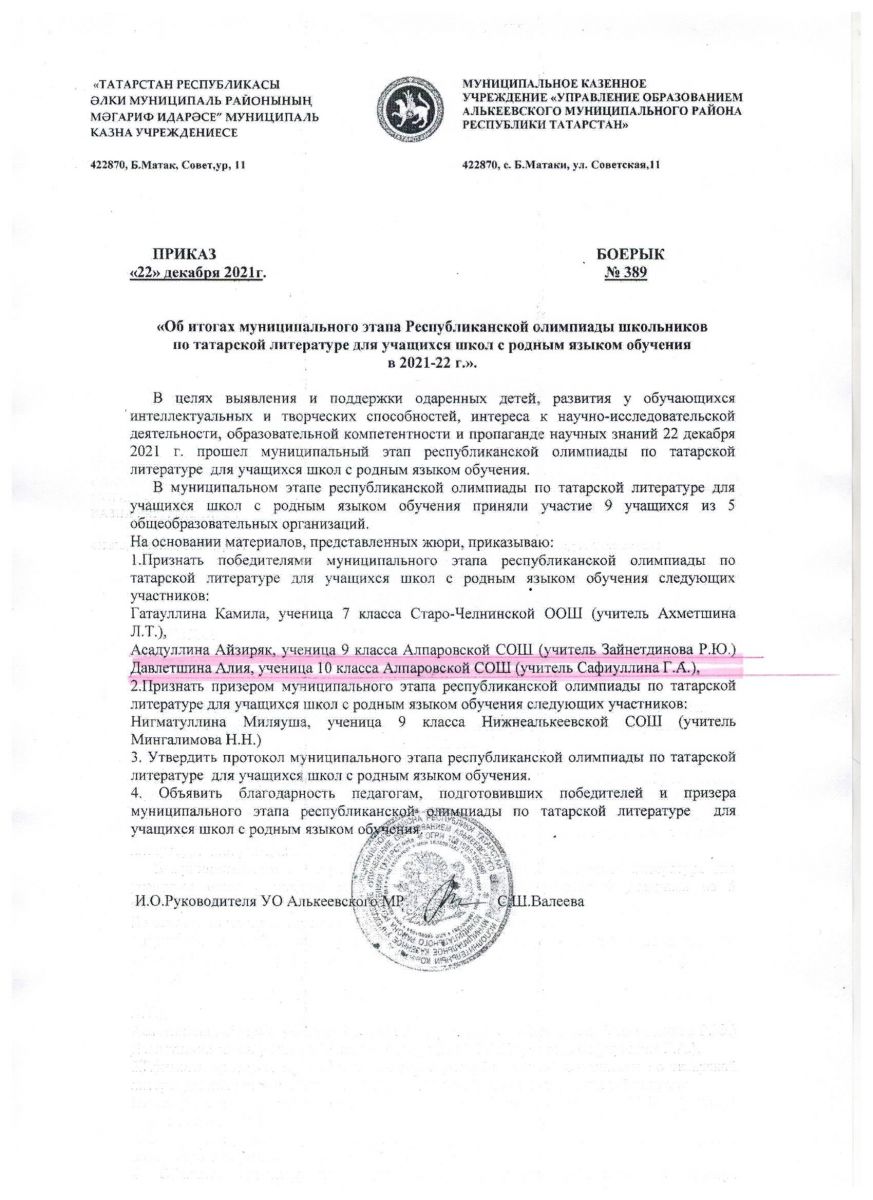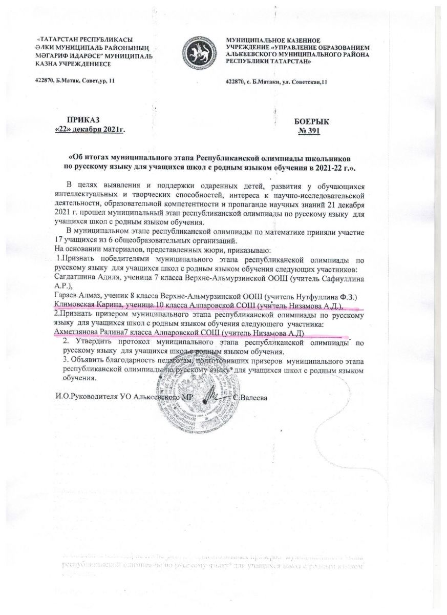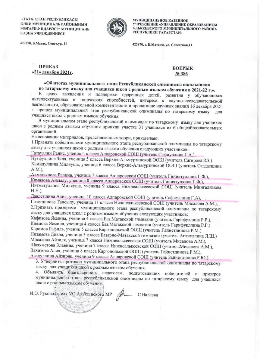 Муниципальное бюджетное общеобразовательное учреждение Алпаровская средняя общеобразовательная школа Алькеевского муниципального района РТ
