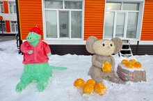Для создания праздничного настроения, сказочной атмосферы территорию детского сада оформили снежными фигурами.
