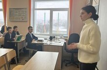 Выпускница гимназии 2022 года, студентка II курса КФУ Мусина Адиля, провела профориентационную встречу с психолого-педагогическим 8а классом. Адиля обучается по направлению «Педагогическое образование» по профилю «Начальное образование, английский язык». Наша выпускница познакомилась с деятельностью классов психолого- педагогической направленности, обратилась с напутствием о выборе замечательной профессии учителя.