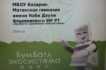 Базарно-Матакская гимназия имени Наби Даули награждена сертификатом за активное участие во Всероссийской акции по сбору макулатуры "БумБатл" движения "Экосистема".