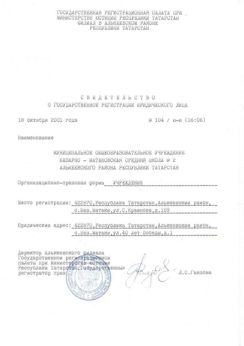 Адрес: 422870, РТ, Алькеевский район, с. Базарные Матаки, ул. 40 лет Победы, д. 1
