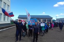 Несмотря на погодные условия, учащиеся школы сегодня организовали МАРШ ДОБРА. С песнями, плакатами колонна учащихся прошлась по улицам села.