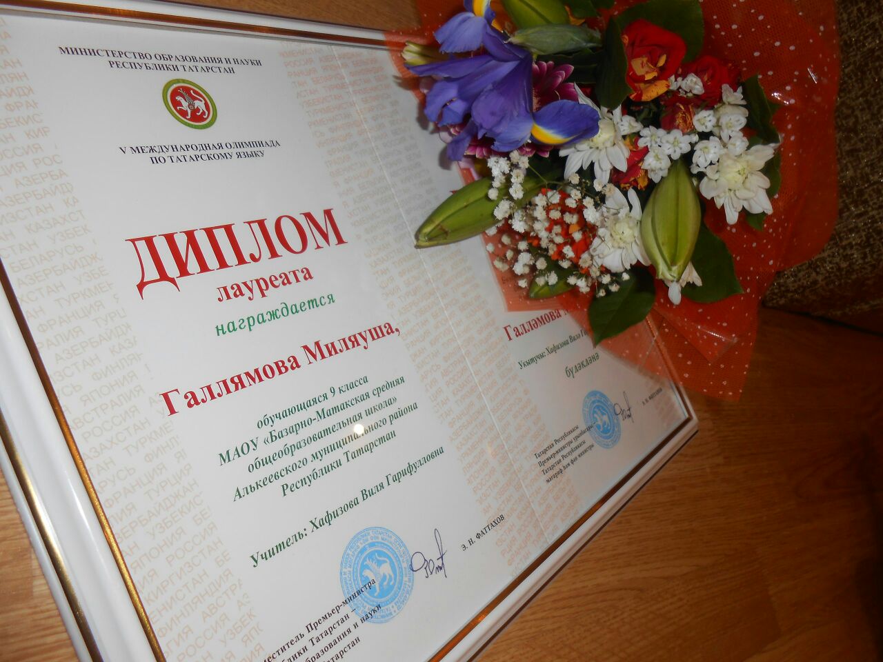 От всей души поздравляем нашу ученицу 9Б класса, активистку ШУС Галлямову Миляушу. Она стала лауреатом в Международной олимпиаде по татарскому языку!!! Молодец, Миляуша!!! Мы гордимся тобой!!!