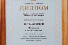 В ООЦ «Дуслык» на торжественном закрытии заключительного этапа республиканской олимпиады школьников «Путь к Олимпу» по английскому языку наградили победителей и призеров олимпиады, в том числе и призера олимпиады Игнатьеву Елену, ученицу 11 класса (учитель Леонтьева Е.Г.). Присоединяемся к поздравлениям.