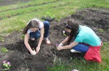 В огороде и на цветнике кипит работа. Учащиеся вместе с учителями работают и утром, и вечером.