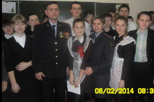6 февраля состоялась встреча с заместителем начальника отдела МВД РФ по Алькеевскому району майором полиции Гайфуллиным Р.Н. и старшим инспектором по ДН майором полиции Сагитовой Г.Ю. Равиль Наилевич - участник боевых действии на северном Кавказе. Он подробно и очень увлекательно рассказывал о боевых действиях, о храбрости и смелости, дисциплине наших воинов. Также ознакомил с культурой, образом жизни местных жителей. Он подчеркнул, что среди местного населения присутствует уважительное отношение к старшим, все ведут здоровый образ жизни, очень высокая культура общения и высоко развит патриотизм. Среди воинов были представители разных национальностей и вероисповедования, среди которых присутствовал толерантность. Каждый боец старался не уронить свою честь и не позорить свою страну. Равил Наилевич призывал юношей служит в армии, подчеркнул, что служба в армии - долг каждого гражданина.