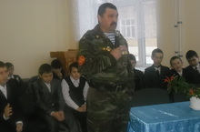 21 февраля, в рамках месячника военно-патриотического воспитания школьников, в классах прошли классные часы. Учащиеся 8Б класса и их классный руководитель Мисбахова Р.А. организовали встречу с участником боевых действий старшим лейтенантом, инспектором ОГИБДД Савиновым Алексеем Владимировичем.