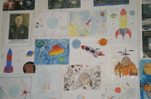 В школе проходит конкурс рисунков, посвящённый ко дню Космонавтики.