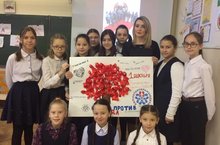 Отряд "SMS - дети" нашей школы провёл Акцию, посвящённую Всемирному дню борьбы со СПИДом. Они провели Флешмоб и раздали красные ленточки.