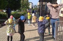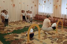 Тәрбияче Хафизова Э.Х. уртанчылыр төркемендә физик культура эшчәнлегендә балаларны йөрү вакытында тәрбияченең сигналына туктарга өйрәтү, төркемләшә белү һәм йөргәндә тотрыклы тигезлекне саклауда кунегүләрне төгәл башкарырга өйрәтә.