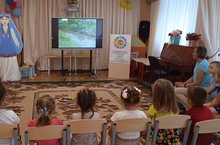 Воспитанники средней группы на световом столе для рисования песком изображают летний день.
