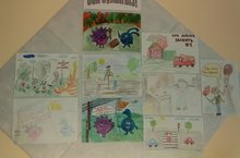 В старших возрастных группах организовали выставку детского рисунка, посвященных вопросам безопасности.