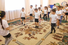 Воспитанники детского сада ежедневно выполняют комплекс утренней гимнастики.
