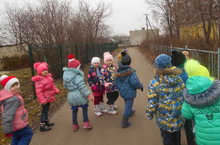 Воспитатель старшей группы Шигапова Г.Г. с воспитанниками на прогулке. Дети с большим интересом наблюдают за изменениями в природе.