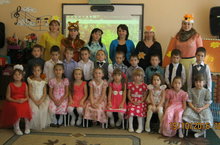 Музыка җитәкчесе Штыкова Г.И. һәм тәрбияче Лилия Анваровна мәктәпкә әзерлек төркеме балалары белән "Кәҗә кергән бакчага" исемле сәхнәләштерелгән әкият күрсәттеләр.