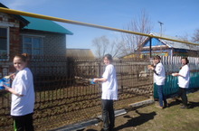 23 апреля наши добровольцы нашей школы оказали помощь одинокой пенсионерке Самарино Раисе Васильевне, покрасили забор.