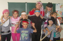 В пришкольном лагере дети с интересом превратились в пиратов. Капитан Браун повел своих пиратов в увлекательное путешествие с препятствиями