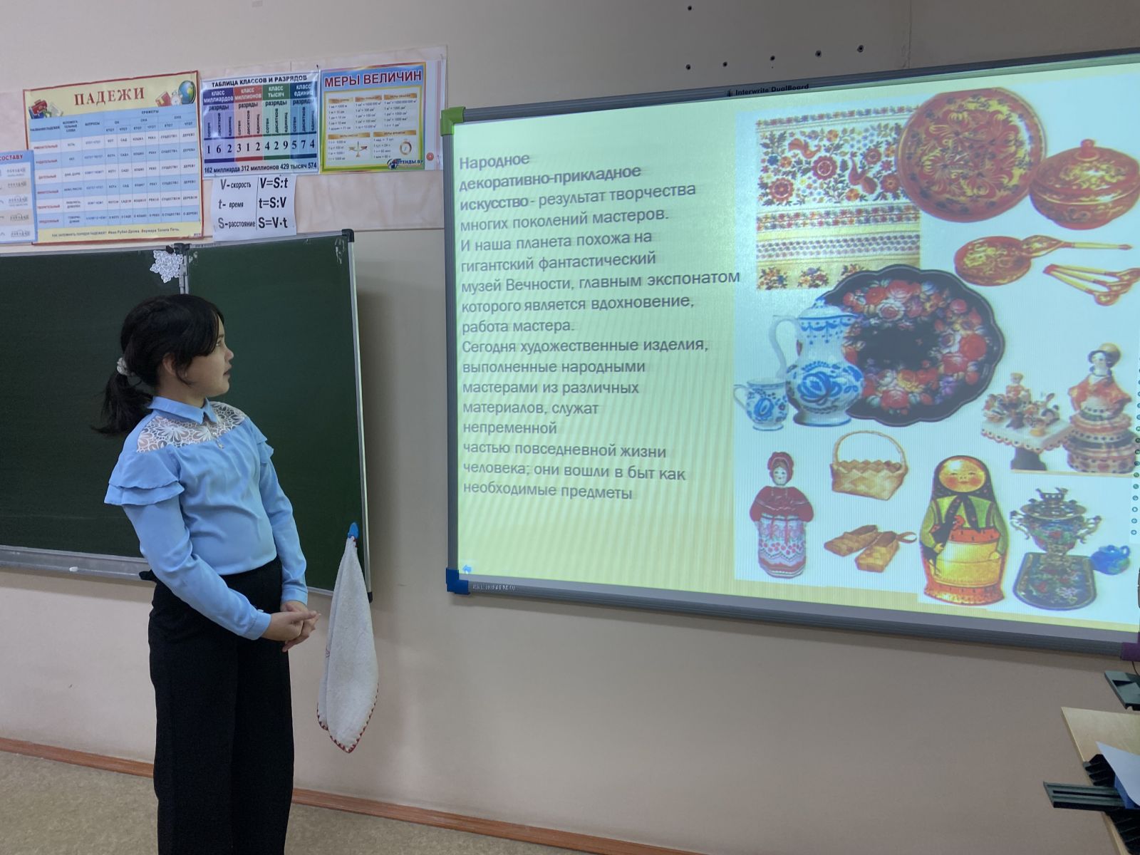 Сегодня, в рамках Года национальных культур и традиций, во всех классах прошли классные часы, посвященные народным художественным промыслам.