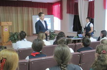 В целях профориентации учащихся старших классов на базе нашей школы состаялась встреча с военным комиссаром района Лаврентьевым В.П. На встрече присутствовали учащиеся 10 - 11 классов и учителя ОБЖ всего района. Лаврентьев В.П. познакомил с военными профессиями и учебными заведениями, где можно получить специальность военного.