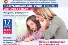 Онлайн-трансляция собрания будет вестись на сайте Казанского инновационного университета имени В.Г.Тимирясова по адресу: https://ieml.ru/. Первая встреча экспертов и родителей в рамках Республиканского родительского интернет-собрания состоится 17 ноября 2017 года (в пятницу) с 12:00 до 13:30 часов.